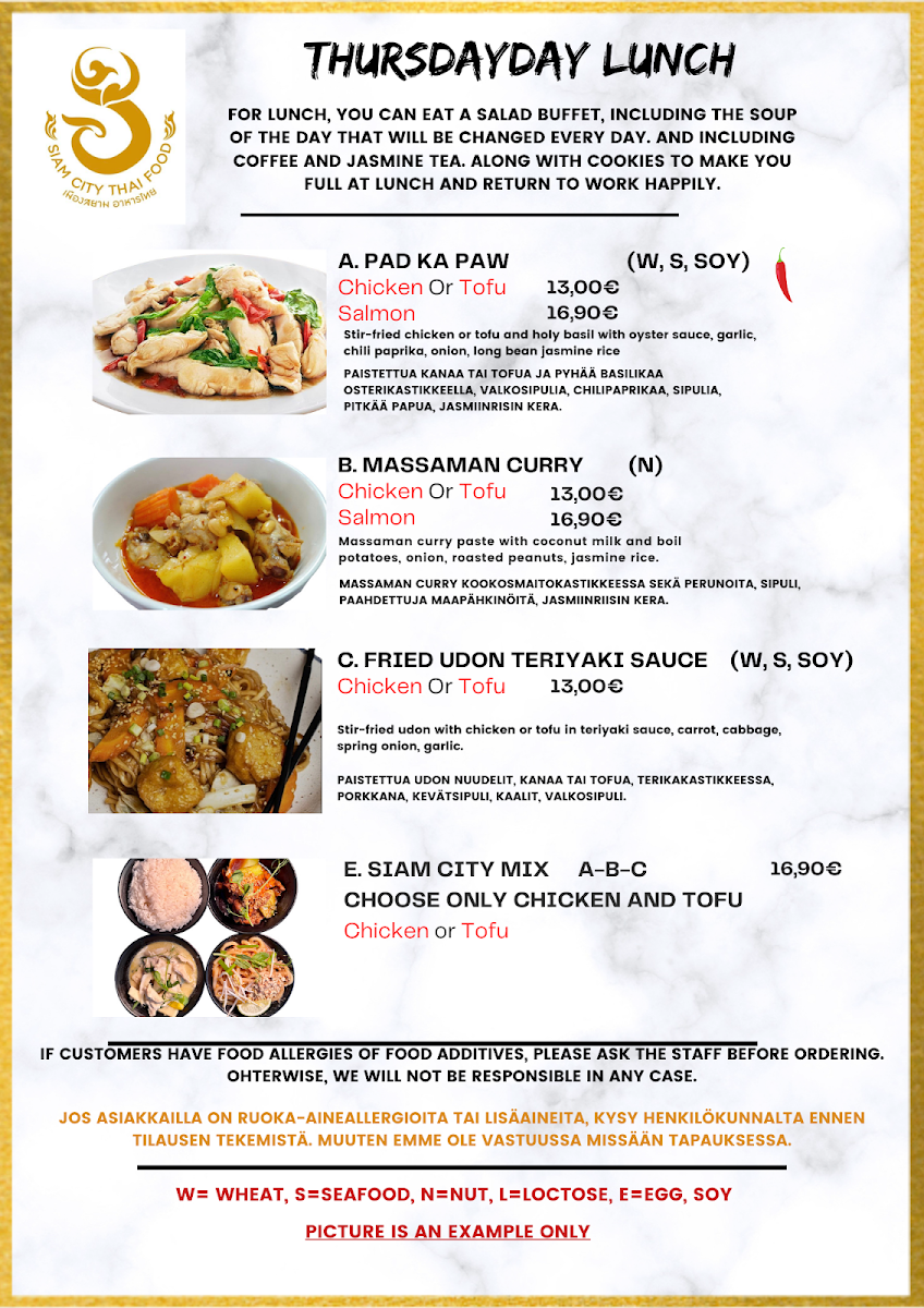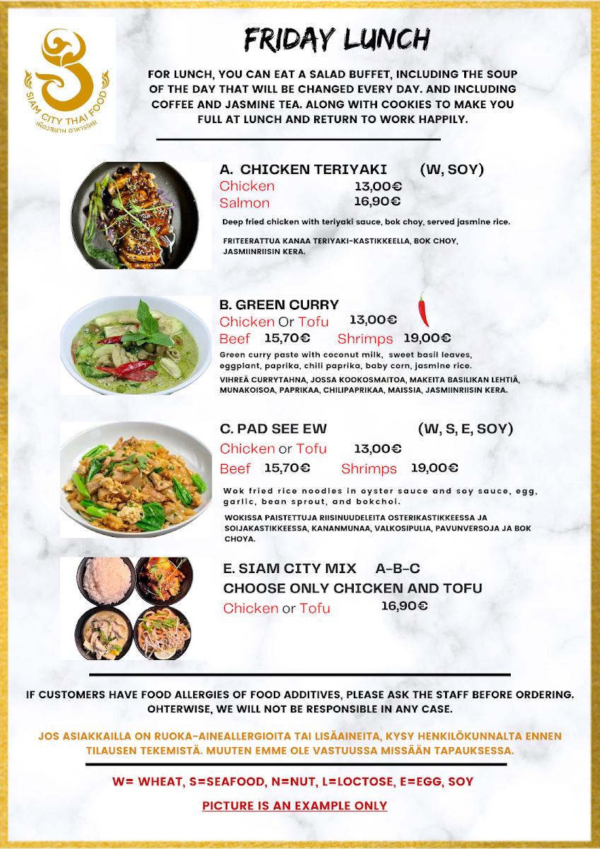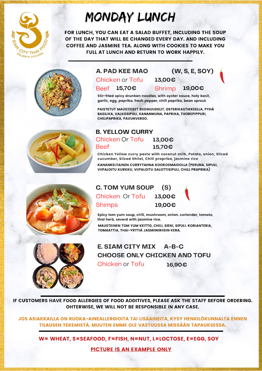 Nestled in the heart of Helsinki at Välimerenkatu 5 B, Siam Thai Modern Restaurant offers a vibrant taste of Thailand that resonates with both locals and visitors. The menu features a rich array of traditional dishes, each artfully prepared to balance flavors and textures. Signature items like Pad Thai and Tom Yum Fried Rice have received rave reviews for their authenticity and pleasing presentations.